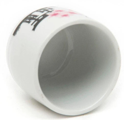 Conjunto de saquê em cerâmica branca com estampa de flores de cerejeira e temática japonesa, contendo 1 garrafa e 4 copos em embalagem para presente.