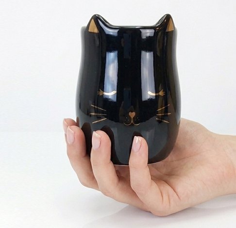 Este copo de cerâmica em formato de gatinho combina charme e elegância com seu acabamento preto brilhante e delicados detalhes dourados. Confortável de segurar, é ideal para café, chá ou outras bebidas, tornando seus momentos mais especiais.