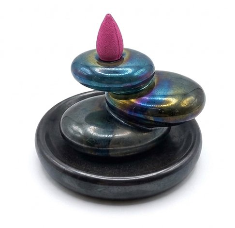 Incensário cascata em formato de pedras empilhadas, com acabamento moderno e efeito visual relaxante. Ao acender o incenso, a fumaça desce suavemente como uma cascata, criando um ambiente tranquilo e acolhedor. Ideal para momentos de relaxamento, meditação ou decoração de ambientes.